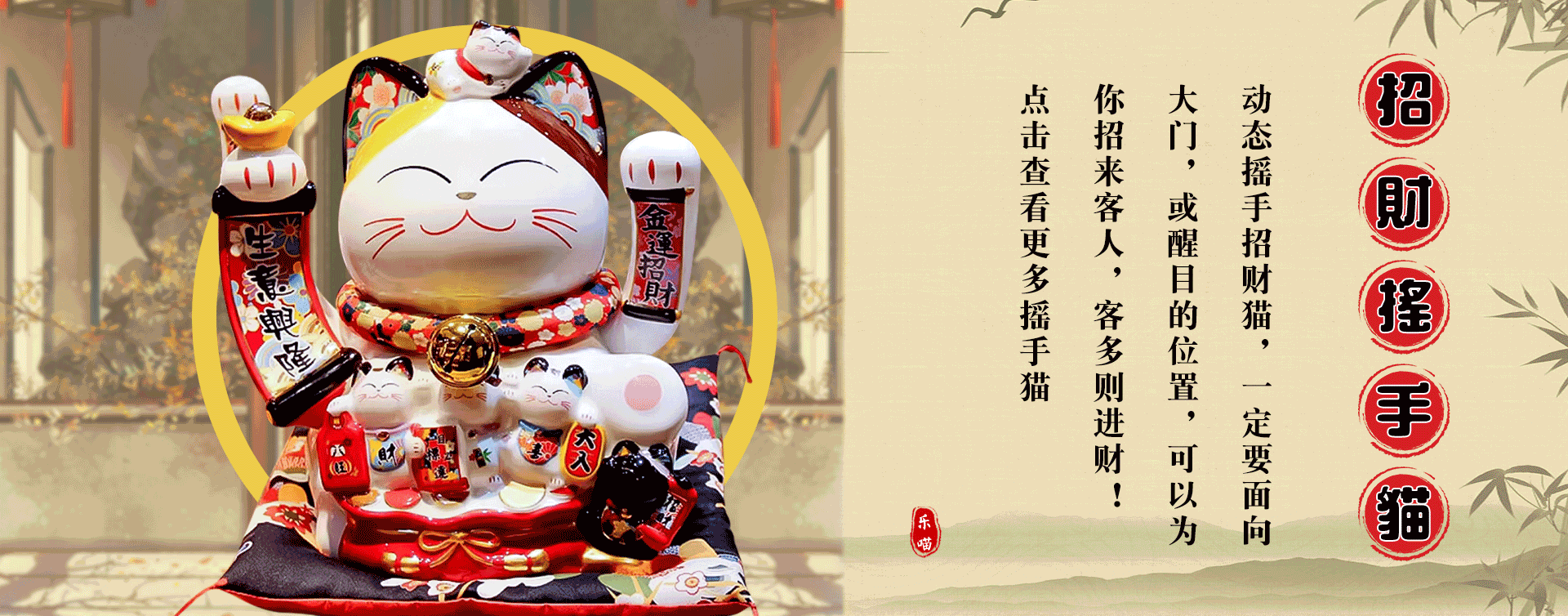 Mèo thần tài vẫy tay thu hút tài lộc vận khí cho gia chủ.