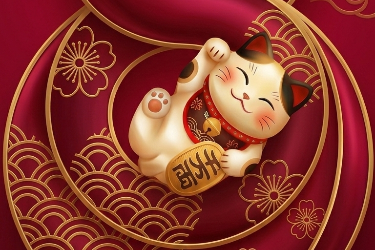 Mèo Thần Tài vẫy tay phải: Khởi sắc tài lộc và tiền tài