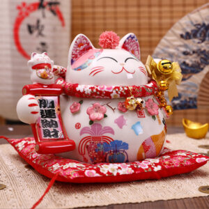 Mèo thần tài tại cửa hàng Maneki Neko House là các sản phẩm được làm từ gốm sứ Nhật cao cấp, đẹp mắt cùng với những họa tiết đẹp mắt, sang trọng và trang nhã thích hợp làm quà khai trương hoặc tân gia, trưng bày tại cửa hàng, phòng khách, phòng làm việc, công ty… nhằm tạo vận may, thu hút tiền tài và hạnh phúc.