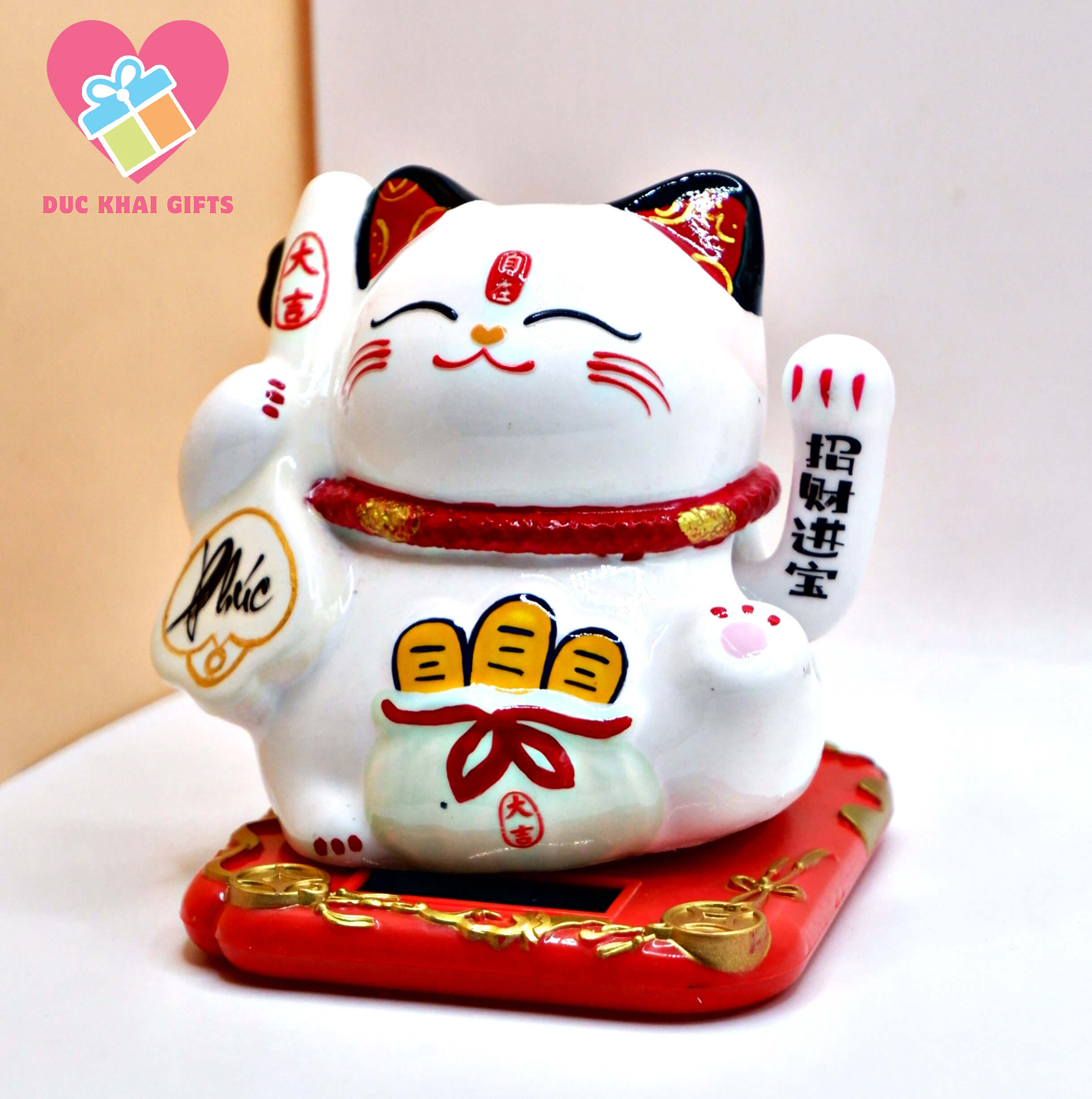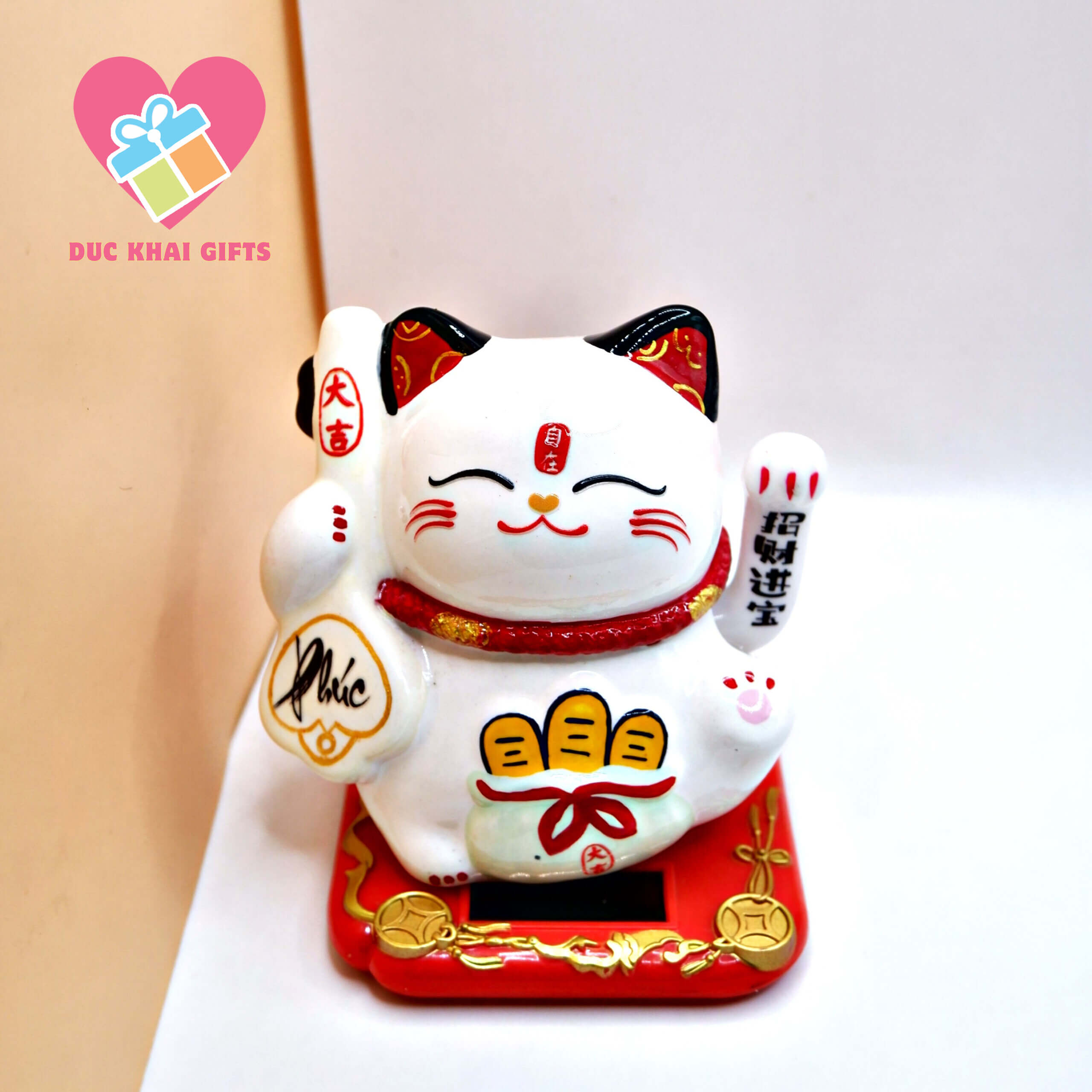 Quà Tặng Đức Khải là doanh nghiệp hàng đầu chuyên sản xuất và phân phối Mèo May Mắn – Mèo Thần Tài Nhật Bản, với nhiều năm kinh nghiệm trong lĩnh vực quà tặng phong thủy và đồ trang trí cao cấp.
