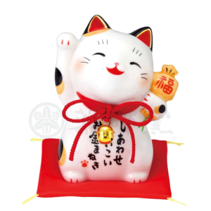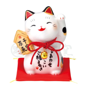 Mèo thần tài Yakushigama được cho là mang đến sự bảo vệ linh thiêng của Yakushi Nyorai cho những người ốm yếu về sức khỏe, kèm với các vật phẩm may mắn chiêu tài đặc trưng của Nhật Bản như búa Uchide Ko Nozuchi, hoa đào Sakura, thuyền châu báu Takarabune, Thất Phúc Thần Shichifukujin, đồng xu Koban…
